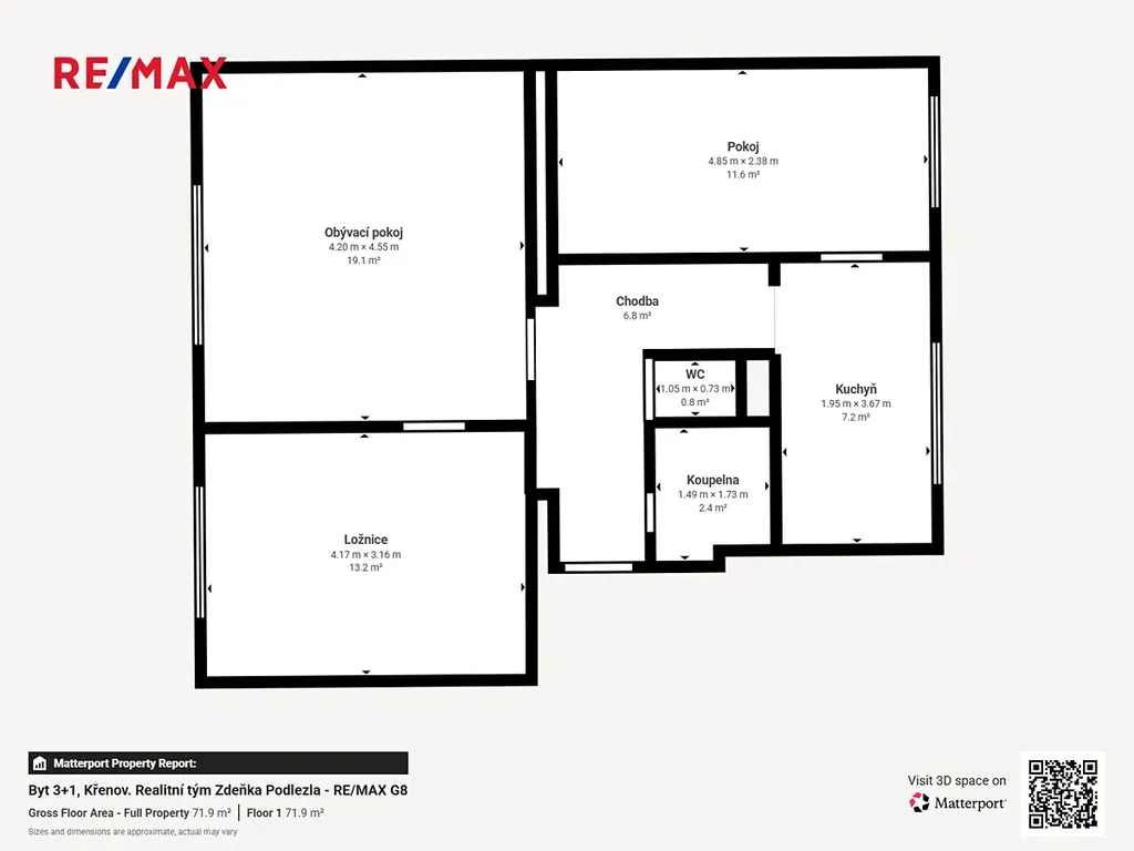 • Dispozice: 3+1 o výměře 63 m² v 1. NP (zvýšené přízemí).