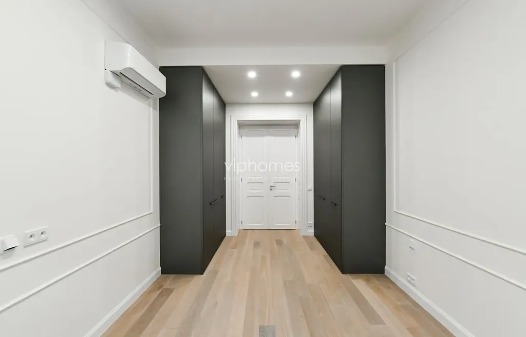 Interiér bytu velikosti 118 m2 tvoří vstupní hala vybavena vestavěnými skříněmi z masivního dřeva, moderně propojený obývací pokoj s kuchyní, 3 prostorově velkorysé ložnice, balkon, 2 minimalisticky pojaté koupelny s příslušenstvím, technické zázemí. Kuchyňská linka vybavena všemi potřebnými spotřebiči včetně vinotéky, Dřevěné dubové podlahy, nová okna s dvouvrstvým sklem a klimatizace. Volný od 1.6.26.