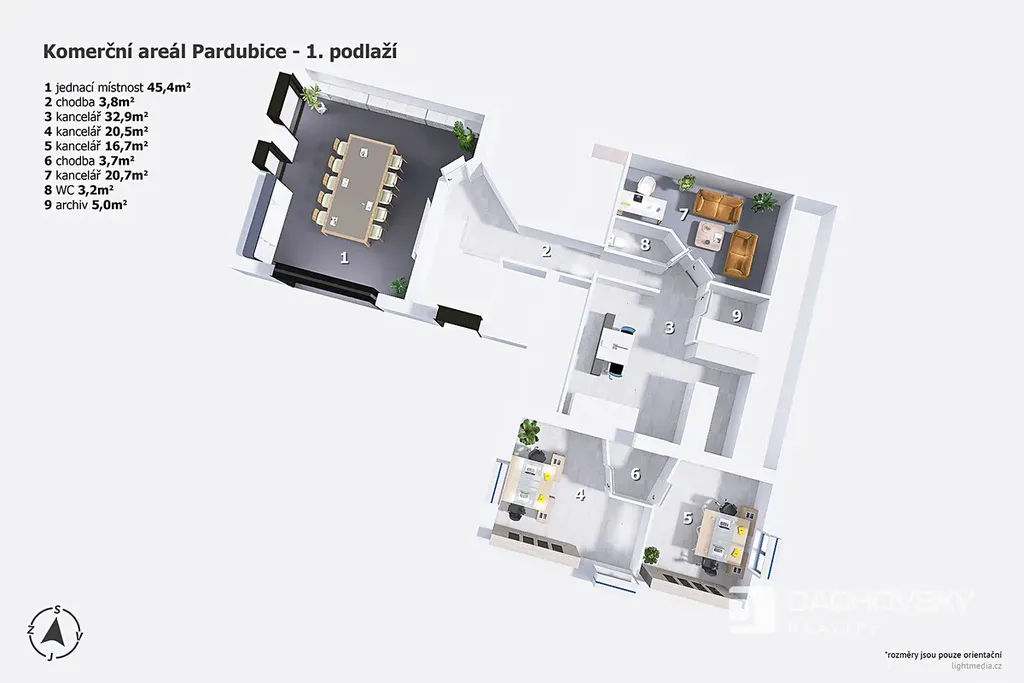 • technické zázemí - serverovna, archiv, místnost pro úklid