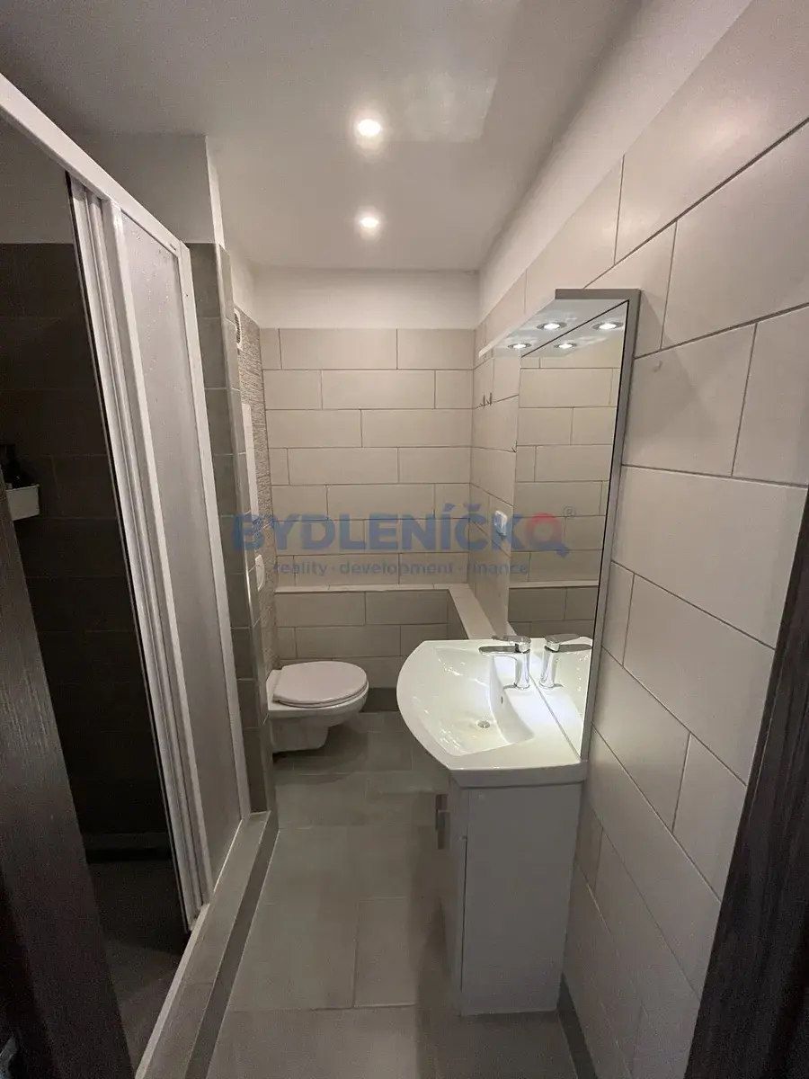 Koupelna má zděné jádro a je vybavena sprchovým koutem.