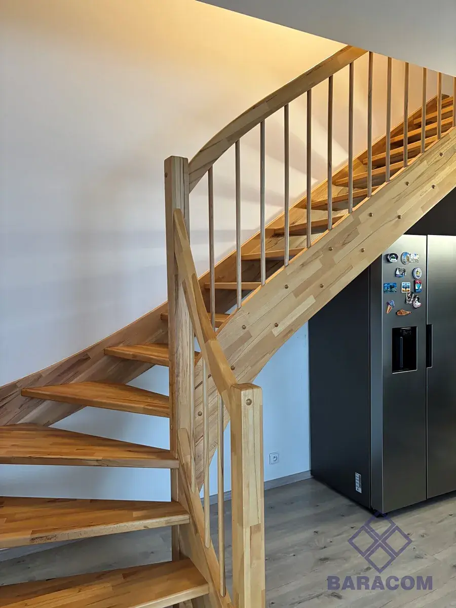 • Patro (2. NP): Do patra vás dovede poctivé celodřevěné schodiště z masivu, které dodává interiéru hřejivou atmosféru. Najdete zde dvě světlé ložnice a koupelnu s vanou.
