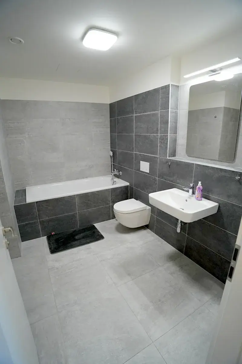Atraktivní nabídka pronájmu zcela nového moderního částečně zařízeného bytu 2+kk/balkon/sklep (celkem 70 m2) včetně garážového stání, Praha 4 - Modřany, ul. Mezi Vodami. Příjemný a slunný byt je součástí nové výstavby bytového projektu "Zahálka", který vyrostl na klidném místě v pražské čtvrti Modřany v blízkosti řeky Vltavy. Součástí vkusně zařízeného bytu o ploše 60 m2 s balkonem o ploše 7,5 m2 je prostorný obývací pokoj s kuchyňským koutem (27,5 m2) a výstupem na balkon, ložnice (16 m2), předsíň (4,5 m2) a koupelna s vanou, umyvadlem a toaletou (7 m2). K dispozici je jedno garážové stání (další parkovací stání k pronájmu je možné zajistit) a zděná sklepní koje (3 m2) v suterénu domu. Kuchyňská linka je vybavená veškerými spotřebiči (el. trouba, indukční varná deska, odsavač par, lednice s mrazákem). Byt se nachází v regulérním 1. patře a je vybavený, jak je uvedeno na fotografiích – vyjma postele. Okna i balkon jsou orientovány na západ. Součástí bytového areálu jsou kavárny, supermarket, fitness centrum a další služby. V docházkové vzdálenosti je stanice tramvají směr centrum Prahy a dále autobusové spojení k metru trasy B – Smíchovské nádraží. Sportovní nadšenci ocení přilehlou cyklostezku směr Výtoň a Zbraslav. Složená jistota činí 70 000 Kč. Budoucí nájemce neplatí provizi. PENB A.