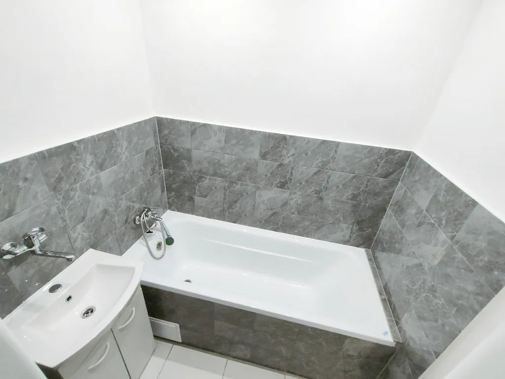 V kuchyni je kuchyňská linka s plynovými kamny a digestoří. V koupelně je vana a umyvadlová skříňka, WC odděleno. Místnosti jsou světlé a prostorné.