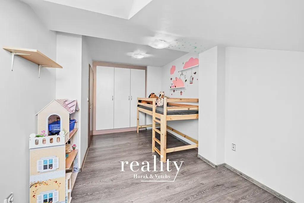 V koupelně se nachází vana, samostatný sprchový kout i toaleta. Praktickým bonusem jsou vestavěné skříně v předsíni, ložnici i obývacím pokoji, které poskytují nadstandardní úložné prostory.