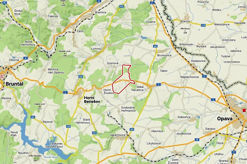 Nabízíme k prodeji soubor pozemků v katastru Malé Heraltice. Jedná se celkem o 141.887 m2, z nichž je 140.596 m2 pronajato k zemědělské činnosti. Pozemky jsou přístupné z obecní nezpevněné komunikace.