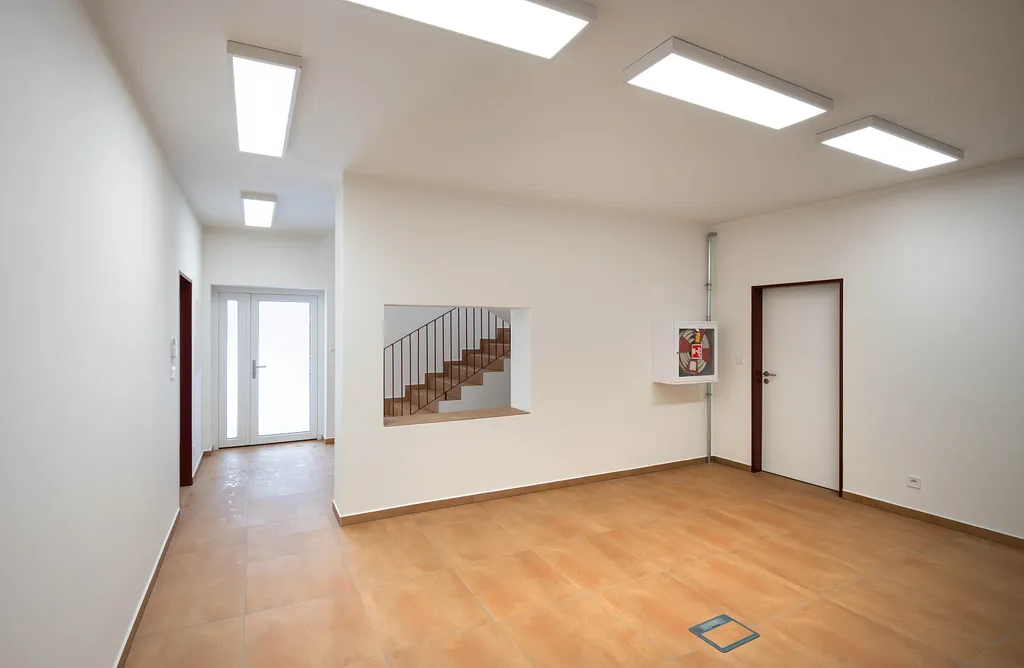Centrální administrativní dvoupodlažní budova poskytuje celkem 420 m² už. plochy ve 2NP. Obě podlaží jsou propojeny vnitřním schodištěm. Budova je vytápěna tepelným čerpadlem vzduch/voda, střecha osazena FTV panely a nabízí v každém podlaží 5 kanceláří, příruční skladové prostory, kuchyňku a soc. příslušenství. Po dohodě je možný pronájem i jednotlivého podlaží.