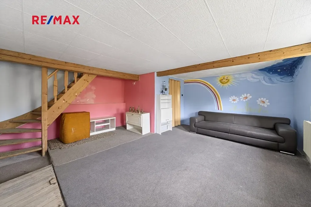 Nemovitost je částečně zrekonstruovaná, nabízí 2 koupelny a spoustu dalšího prostoru, aktuální obyvatelnou dispozici 3+kk, přičemž patro je vhodné k vestavbě dalších obytných prostor.