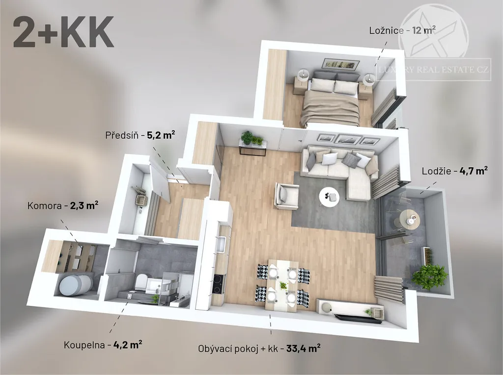 - 2+KK 56,5m² + balkon 4,7 m²