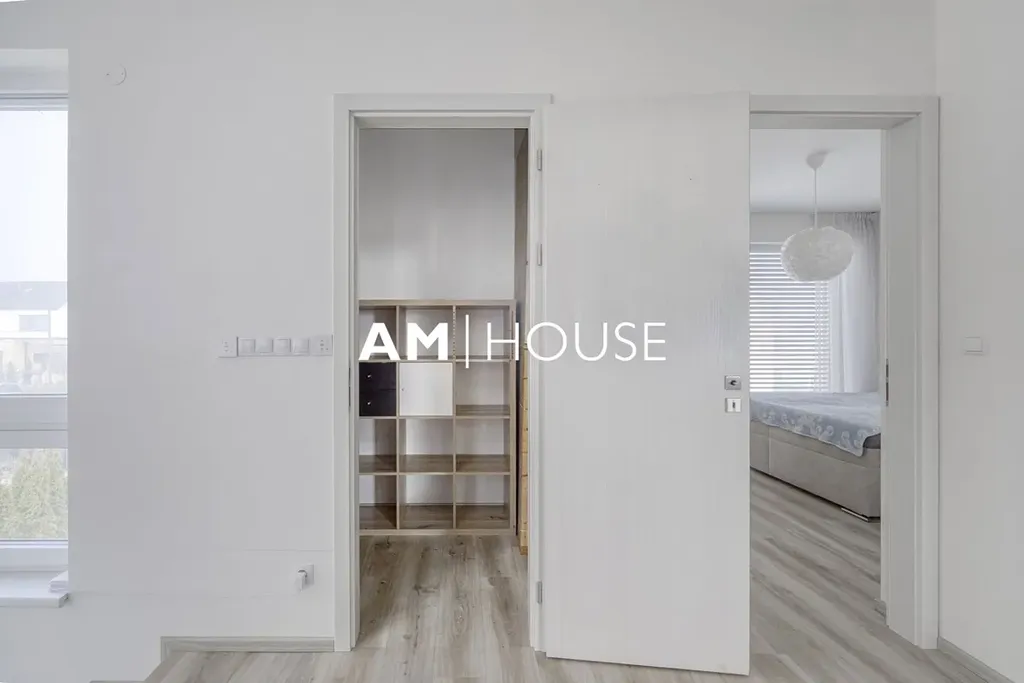 Dům nabízí komfortní rodinné bydlení s důrazem na moderní technologie, energetickou úspornost a praktické řešení prostoru. V přízemí se nachází prostorný obývací pokoj s kuchyňským koutem a přímým vstupem na zahradu, který tvoří přirozené centrum domu. Díky velkým oknům je interiér velmi světlý a příjemně propojený s venkovním prostorem. V patře jsou umístěny tři samostatné ložnice a koupelna, což poskytuje dostatek soukromí pro všechny členy domácnosti.