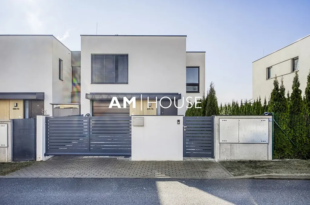 Dalším praktickým prvkem je vjezdová brána realizovaná na míru dle projektu. Lokalita nabízí klidné rodinné bydlení s dobrou dostupností do centra Prahy a zároveň příjemné okolí s dostatkem zeleně.