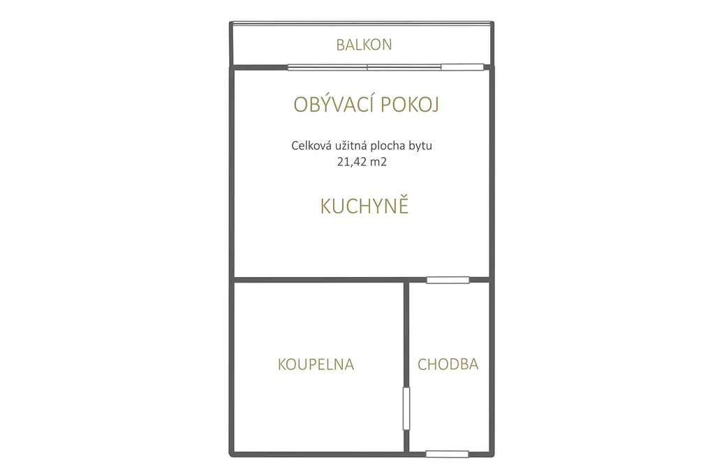 Dispozice: Vstupní chodba, koupelna s vanou, hlavní obytná místnost s kuchyňským koutem.