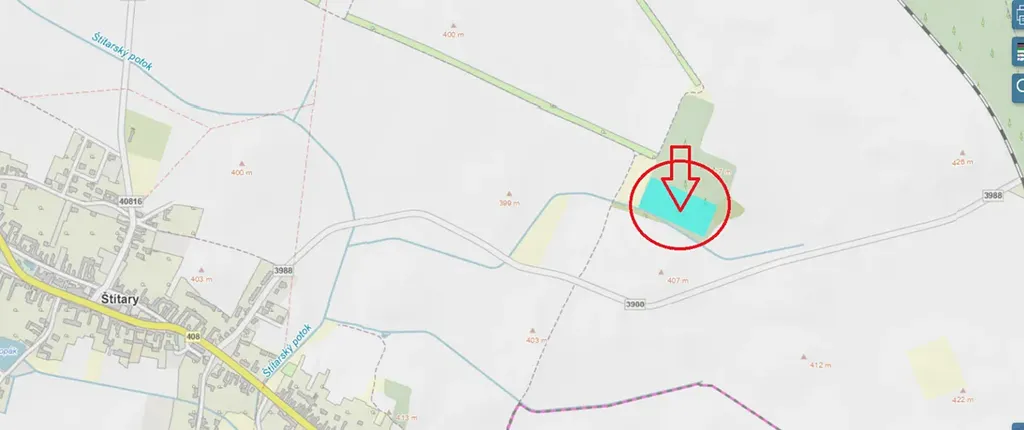 Vlastníme podíl 1/4 na pozemku o celkové výměře 3 942 m2.