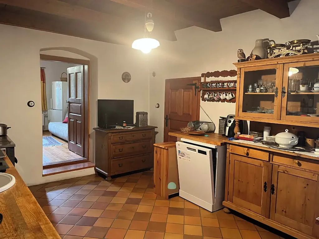 Kuchyně je vybavena plynovým sporákem i sporákem na tuhá paliva, což umožňuje variabilitu při vaření i vytápění. Koupelna nabízí moderní komfort v podobě sprchového koutu a umyvadla.
