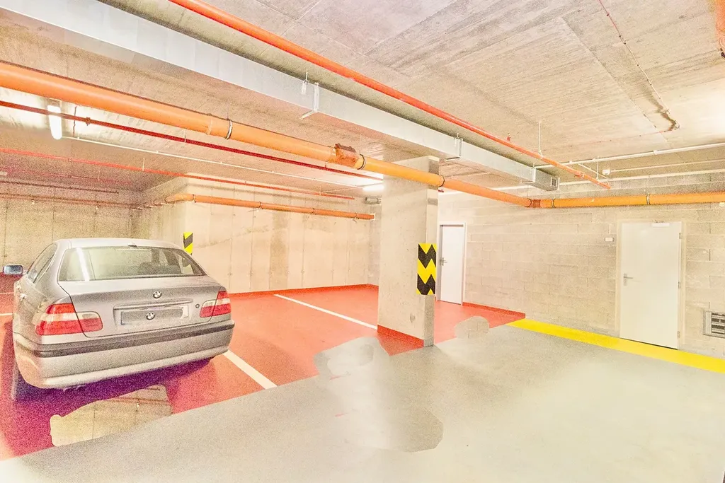 Na podlahách jsou kvalitní dřevěné parkety v kombinaci s dlažbou. K bytu náleží 2 velké sklepy a garážové stání v suterénu domu.