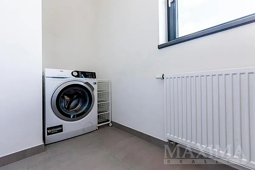 - praktická technická místnost s prostorem pro pračku a úložný prostor
