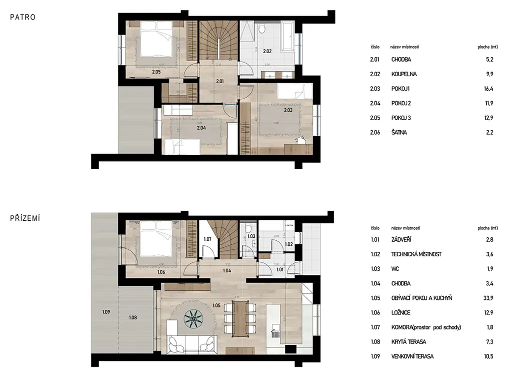 Rodinné domy o velikosti 4+kk byly navrženy s ohledem získat dostatek životního prostoru pro každého člena rodiny.