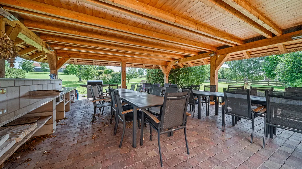 Dominantou areálu je stylová klubovna, vybudovaná ve zrekonstruovaném statku z 19. století.