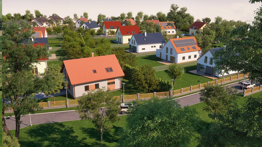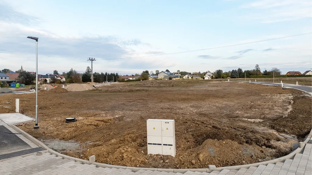 Inženýrské sítě jsou dokončeny, parcely jsou připraveny pro výstavbu rodinných domů.