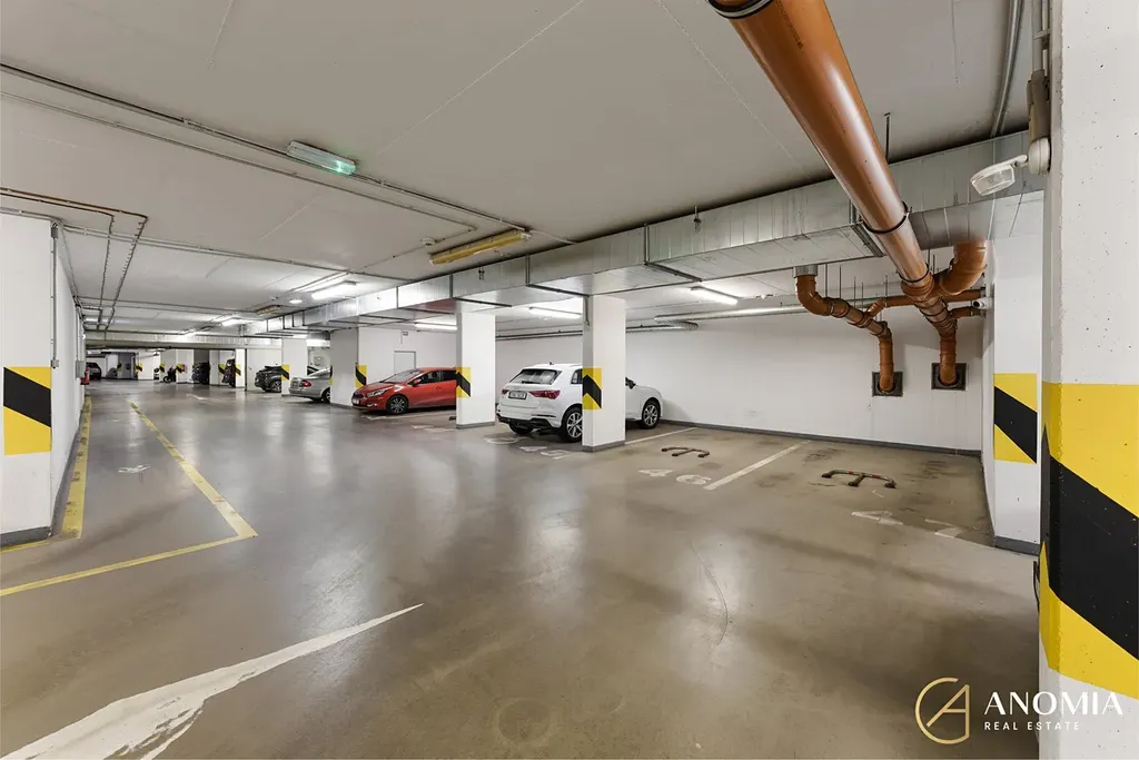 Součástí prodeje je také parkovací stání v suterénu domu o výměře 12 m² a přímo vedle něj prostorný zděný sklep o velikosti 13,12 m², což představuje velmi praktický a v pražských poměrech nadstandardní úložný prostor.