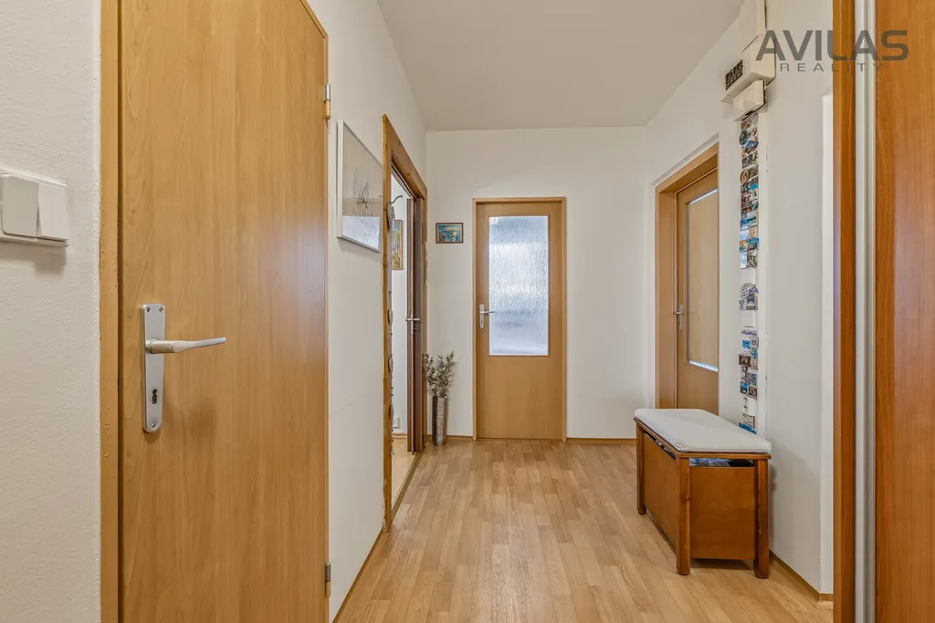 Byt se nachází ve 2. patře panelového domu a nabízí příjemný výhled do zahrady. Součástí domu je kočárkárna, kolárna, sušárna a společenská místnost (herna). K bytu náleží sklepní kóje o velikosti 4 m².