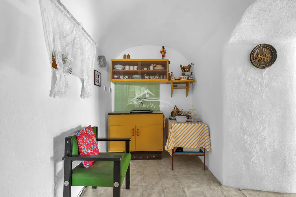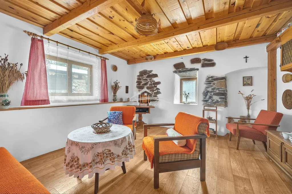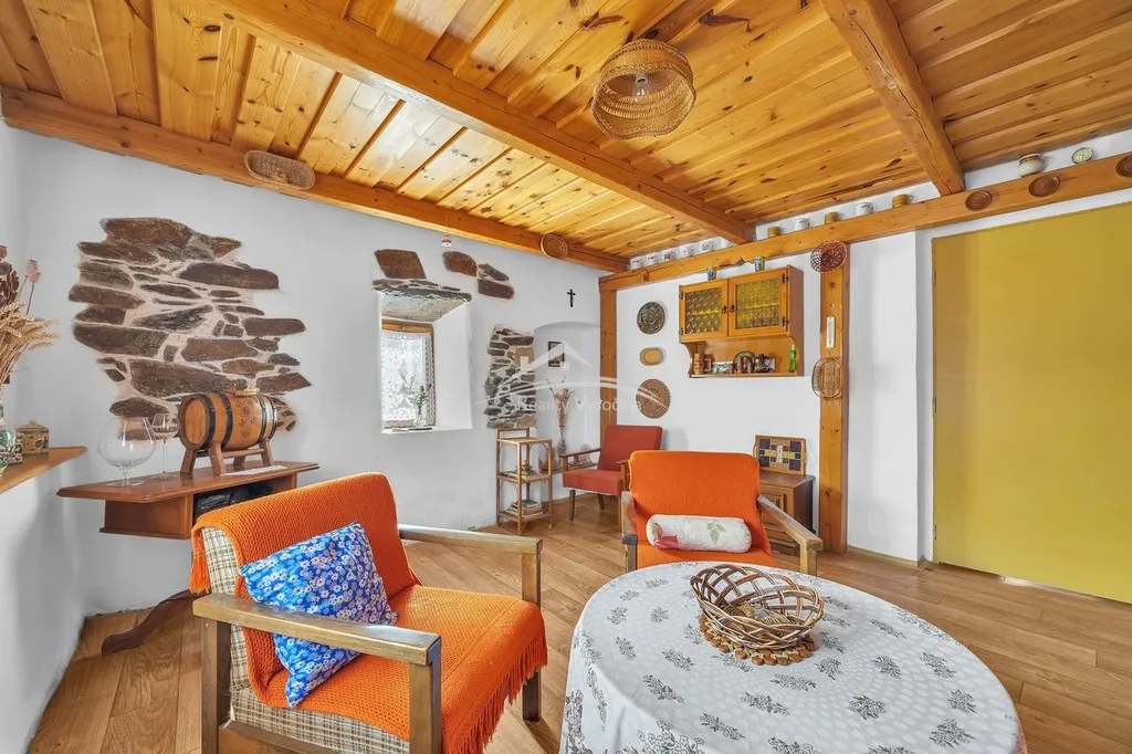 Interiér domu si zachoval původní atmosféru venkovského stavení, nachází se zde původní klenuté a trámové stropy, které dodávají domu jedinečný charakter. Dům se prodává včetně vybavení tak, jak je zachyceno na fotografiích, a je tak připraven k okamžitému užívání.
