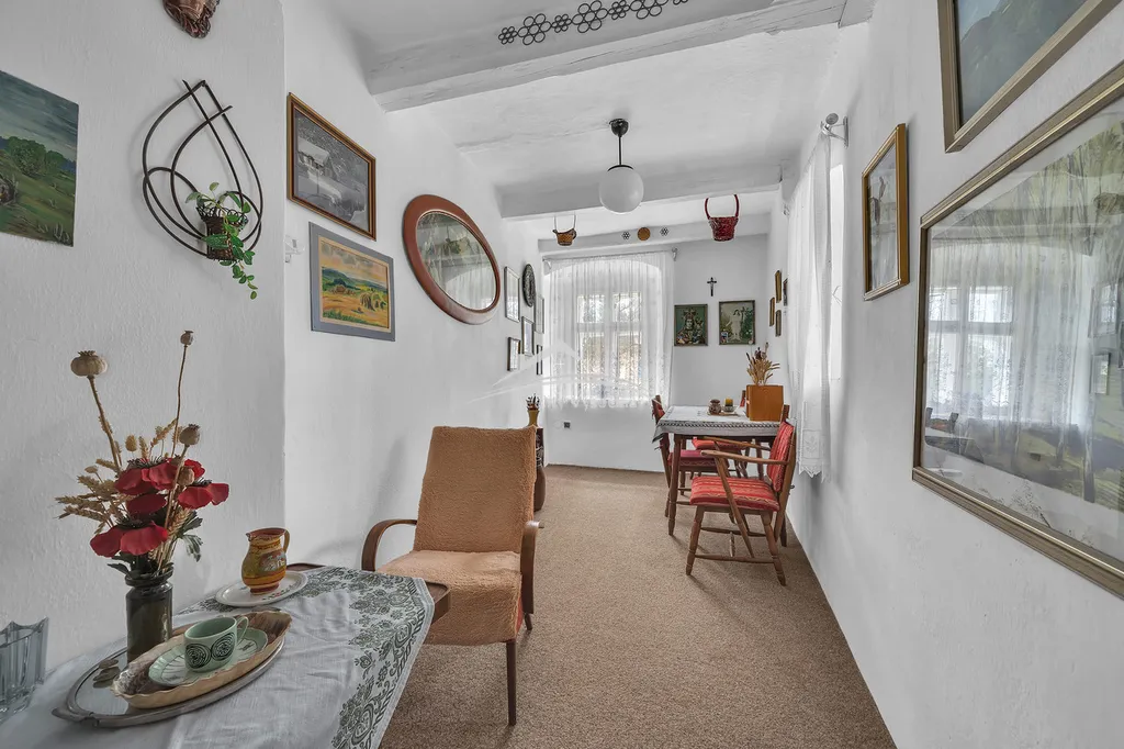 Interiér domu si zachoval původní atmosféru venkovského stavení, nachází se zde původní klenuté a trámové stropy, které dodávají domu jedinečný charakter. Chalupa se prodává včetně vybavení tak, jak je zachyceno na fotografiích, a je tak připraven k okamžitému užívání.