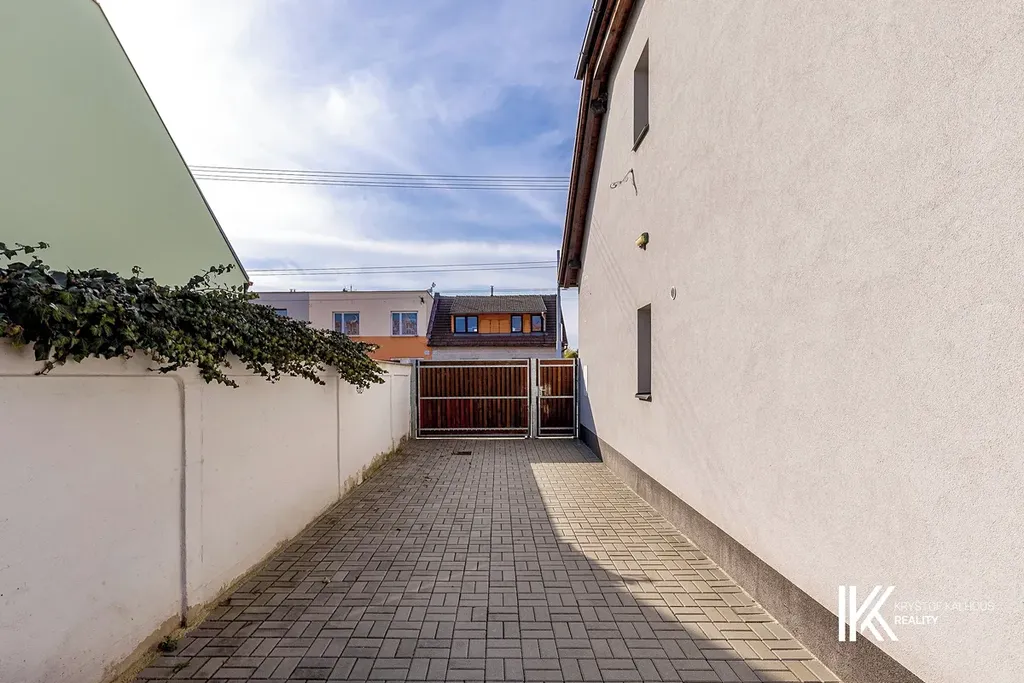 V přední části pozemku stojí hlavní dvoupodlažní budova přístupná z ulice. Za ní se nachází vydlážděný dvůr s vjezdovou branou a dále dvě samostatné jednopodlažní stavby. Úplně v zadní části pozemku je pak menší zahrada se vzrostlou zelení, která může sloužit jako odpočinková zóna pro zaměstnance i klienty. Celý areál je uzavřený a působí kompaktně, což umožňuje bezpečné a přehledné využívání všech prostor.
