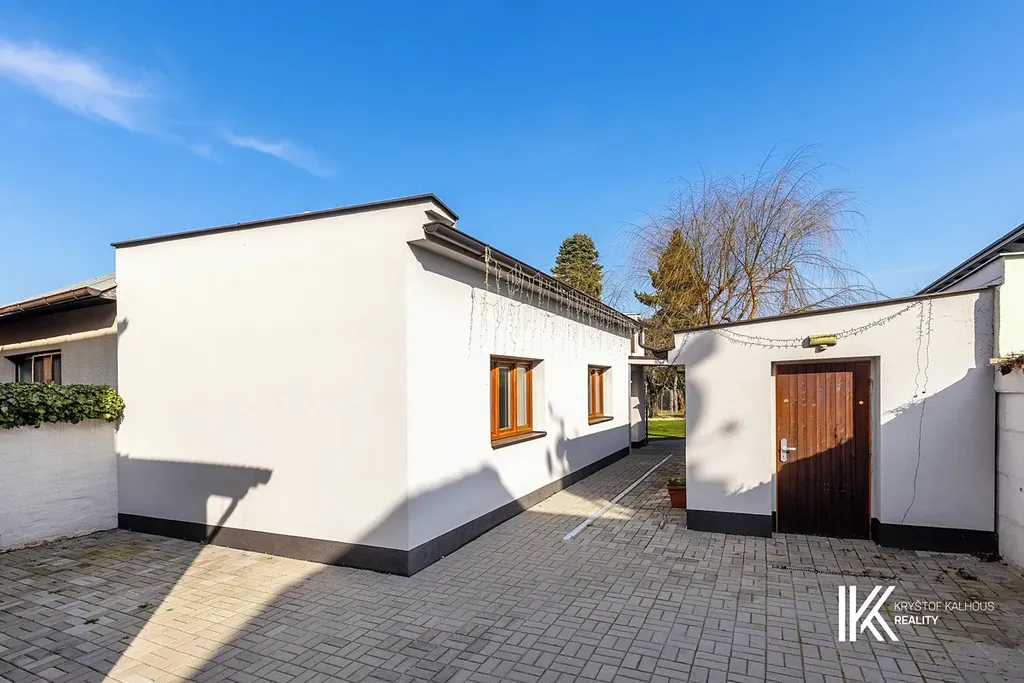 Za hlavní budovou se nachází vydlážděný dvůr, který umožňuje pohodlný příjezd autem až do areálu a parkování několika vozidel. Dvůr zároveň propojuje další dvě stavby umístěné v zadní části pozemku, které rozšiřují možnosti využití celého objektu.