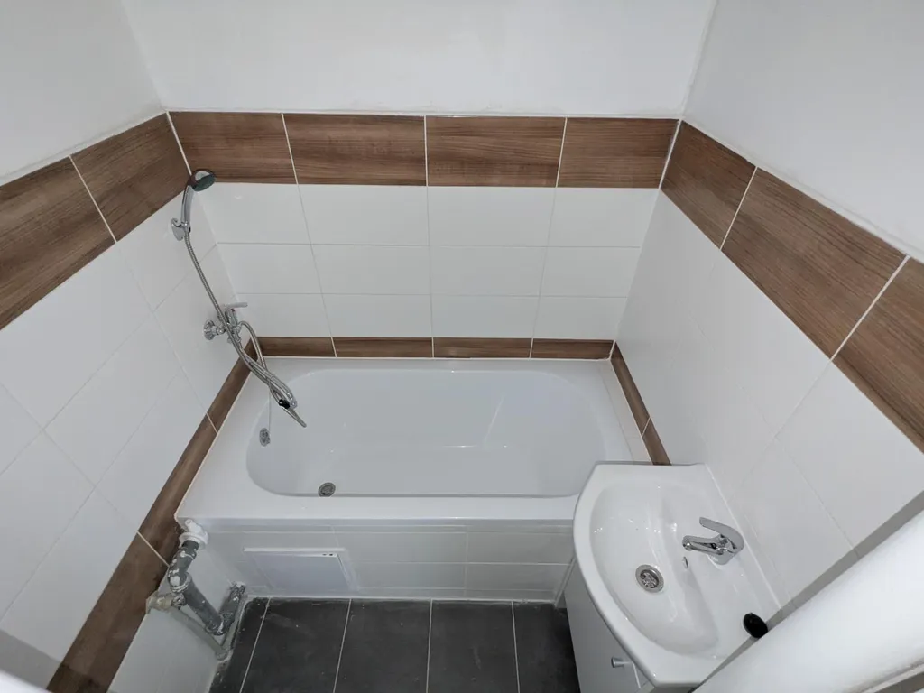 V kuchyni je kuchyňská linka zatím bez sporáku, který bude dodán. V koupelně je vana a umyvadlo se skříňkou, WC odděleno. Celá koupelna je obložena vkusnými obklady do moderního stylu. Místnosti jsou světlé a prostorné. K bytu náleží sklep.