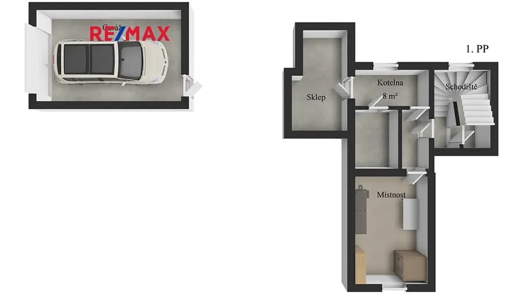 Součástí nemovitosti je také samostatná garáž s úložným prostorem na pochozí půdě.