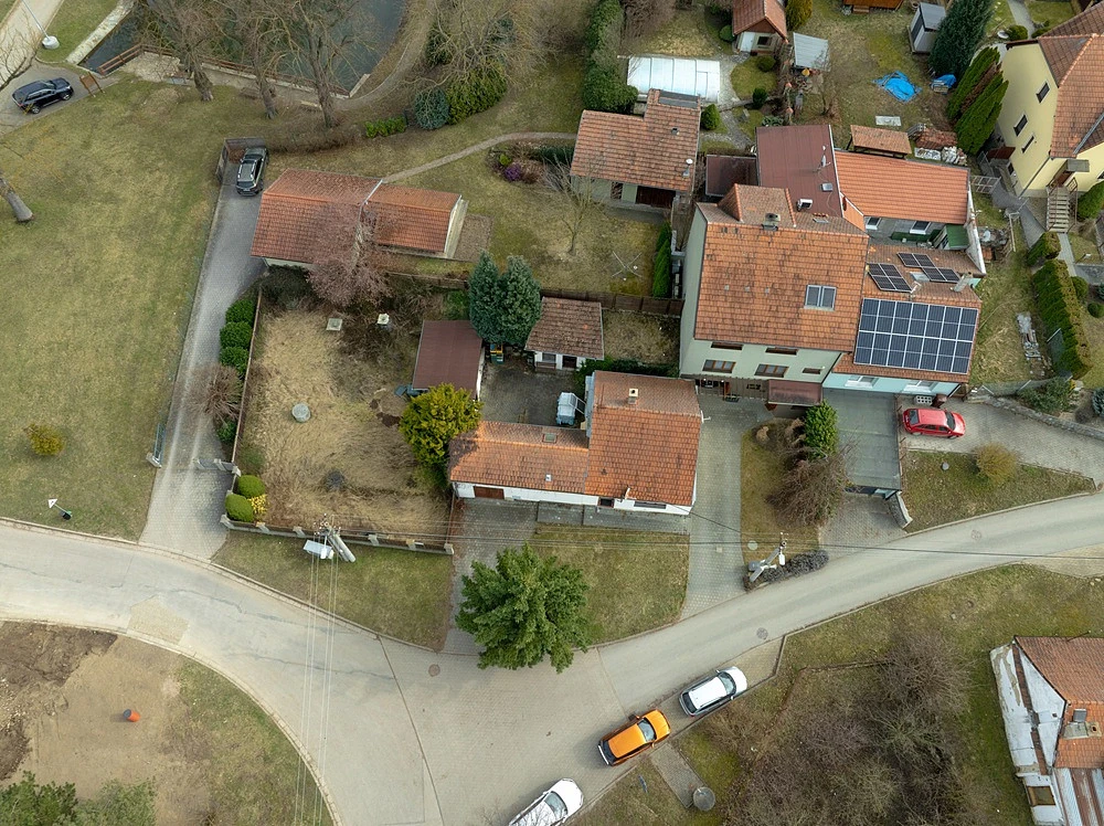 Dům je situován na prostorném pozemku o celkové ploše 420 m², z toho 217 m² tvoří zahrada na které se nachází vlastní studna s užitkovou vodou, a která je ideální pro zahradničení nebo relaxaci na čerstvém vzduchu. Na dvorku je dostatek prostoru nejen pro posezení a grilování, ale i pro případnou menší výstavbu, například pergoly. Výhodou je také garáž a sklep, které poskytují dostatek úložného prostoru.