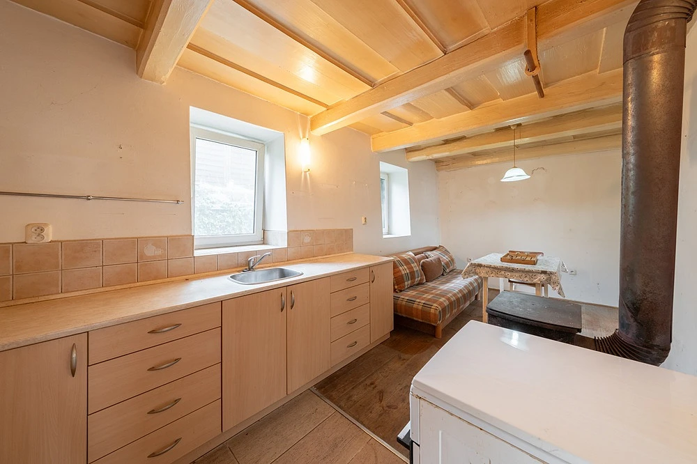 Dispozice: vstupní chodba, pokoj, kuchyně, zrekonstruovaná koupelna s vanou společná s WC.