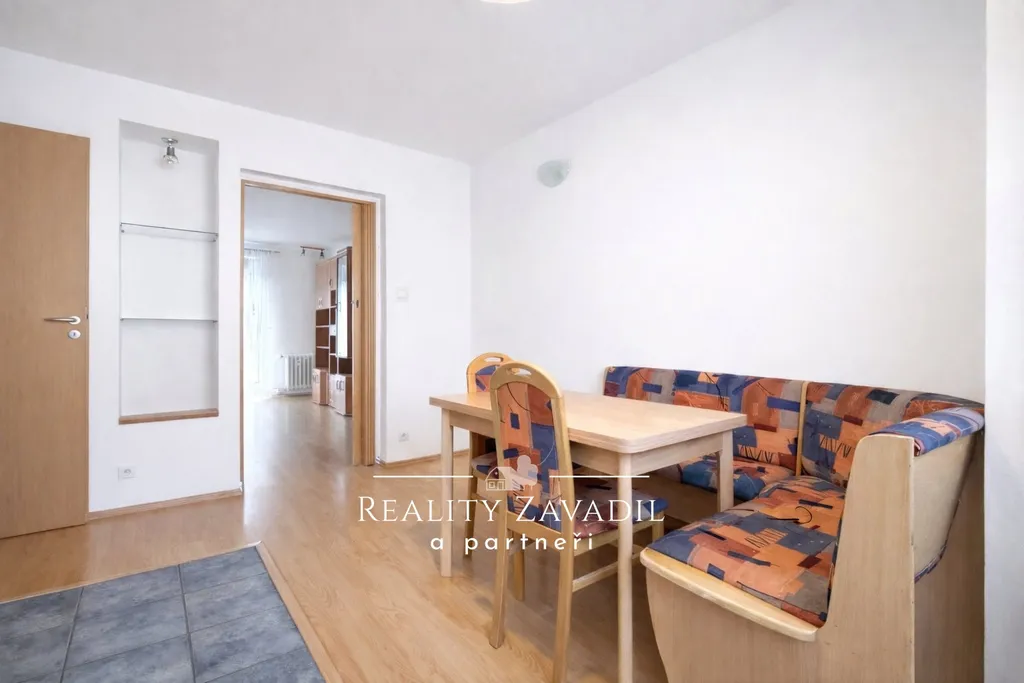 Byt je velmi prakticky dispozičně řešen. Dominantou je prostorná kuchyně, která nabízí dostatek místa nejen pro vaření, ale i pro pohodlné stolování u jídelního stolu. Obývací pokoj s francouzskými okny je příjemně prosvětlený a nabízí vstup na balkon orientovaný do zahrady, kterou je možné využívat k odpočinku.