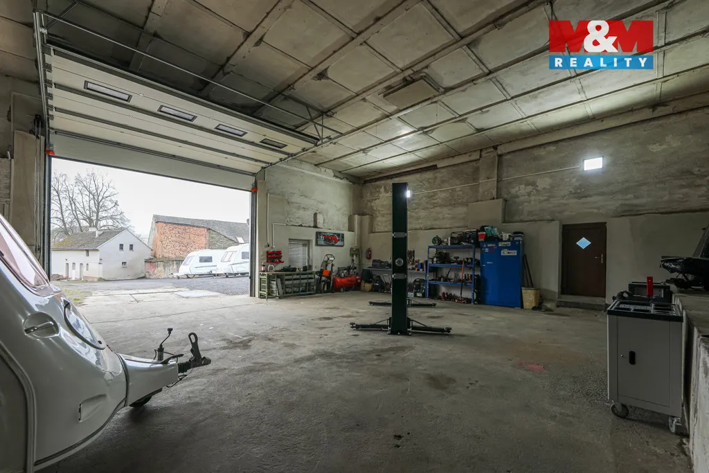 K prodeji skladové a provozní prostory v rámci uzavřeného areálu s výborným technickým zázemím a velkým potenciálem dalšího využití v obci Pakoslav u Úněšova. Dominantou je prostorná hala o výměře 220 m², která je vhodná pro skladování, logistiku, servisní činnost. Objekt je vybaven novými vjezdovými vraty o rozměrech 4×5m, což umožňuje pohodlný vjezd i větší techniky. Po celé hale je rozvedena nová elektroinstalace 230/380V, k dispozici je LED osvětlení, alarm a kvalitní technické zázemí. Součástí prostoru je také kancelář, která umožňuje administrativní provoz přímo v areálu. Vytápění haly je řešeno kamny na dřevo. Další skladové možnosti nabízí hospodářské stavení s klenbami a velkou půdou, vhodné pro uskladnění materiálu či rozšíření provozu. Celková plocha pozemku činí 1 538 m² s možností rozšíření o dalších 470 m², což zajišťuje dostatek manipulačního prostoru i dlouhodobý investiční potenciál. Navíc je možné upravit dům na pozemku na soukromé bydlení. Více informací u makléře.