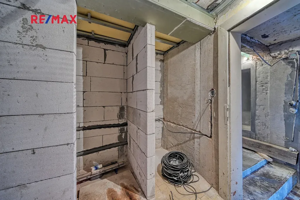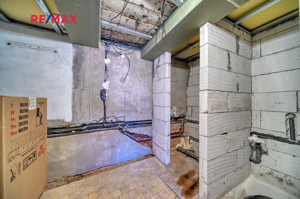 Koupelna je připravena k dokončení podle představ nových majitelů. WC je samostatné.