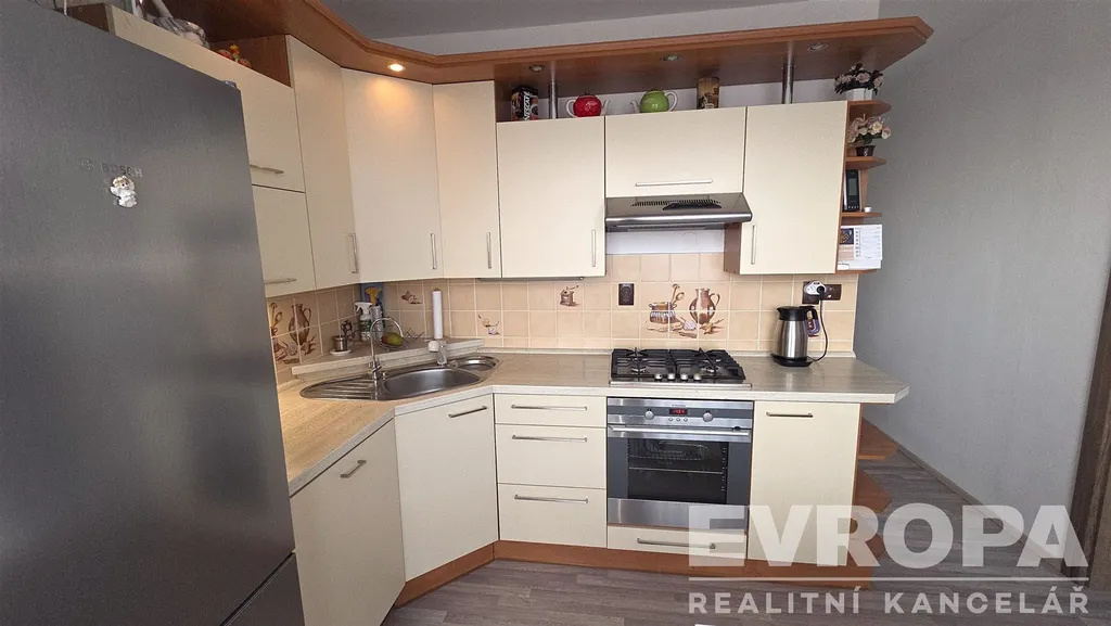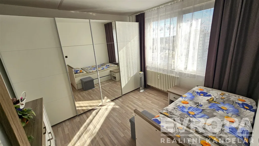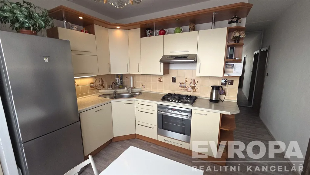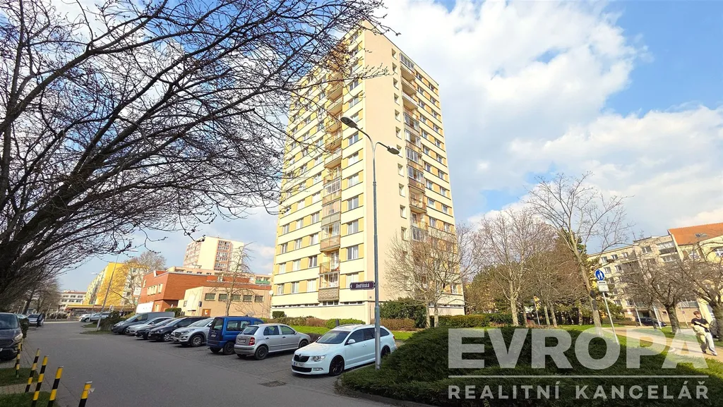 Tento světlý a prostorný byt 3+1 o celkové užitné ploše 76 m² se nachází ve 13. patře čtrnáctipatrového domu s dvěma výtahy. Dispozičně byt disponuje dvěma ložnicemi, obývacím pokojem spojeným s kuchyní, koupelnou a samostatným WC. K bytu náleží také sklep o velikosti 2 m² a lodžie o ploše 3 m², což umožňuje pohodlné posezení s krásným výhledem na město. Je zde možnost využívat sušárnu na patře.