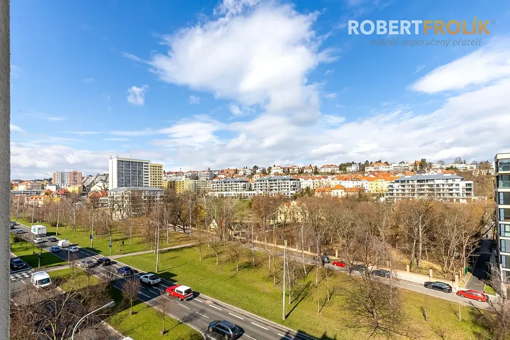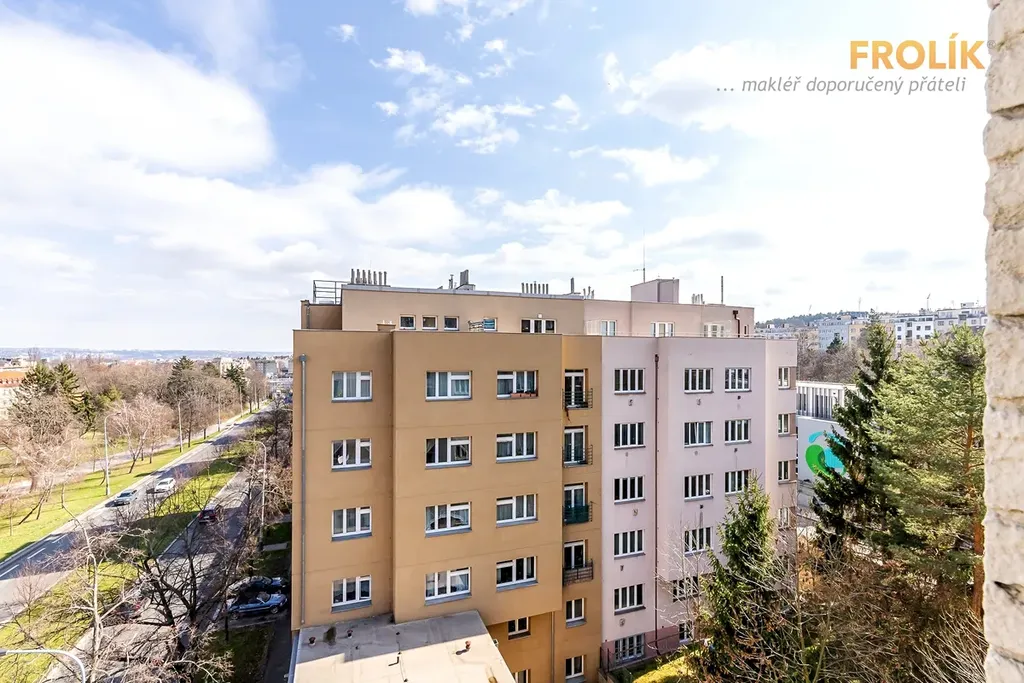 V 5. patře bytového domu (s výtahem) na ulici Patočkova, kousek od hotelu Pyramida, si můžete pronajmout zařízený byt 2+kk (cca 40 m2) s pěkným výhledem. Z oken, které jsou otočené na SV, uvidíte na část Prahy a do parku Kajetánka. Okna jsou plastová s dvojskly a výrazně odhluční dopravu na Patočkové. Nad bytem je ještě jedno patro, takže nebudete úplně pod střechou. Půdorys bytu je praktický, nenajdete tu žádné zbytečné nevyužitelné plochy. Za zmínku stojí parkety, koupelna s vanou a oknem, bojler, wawky. A když si na vanu dáte zástěnu, můžete jí používat i jako sprchu.
