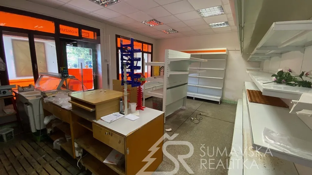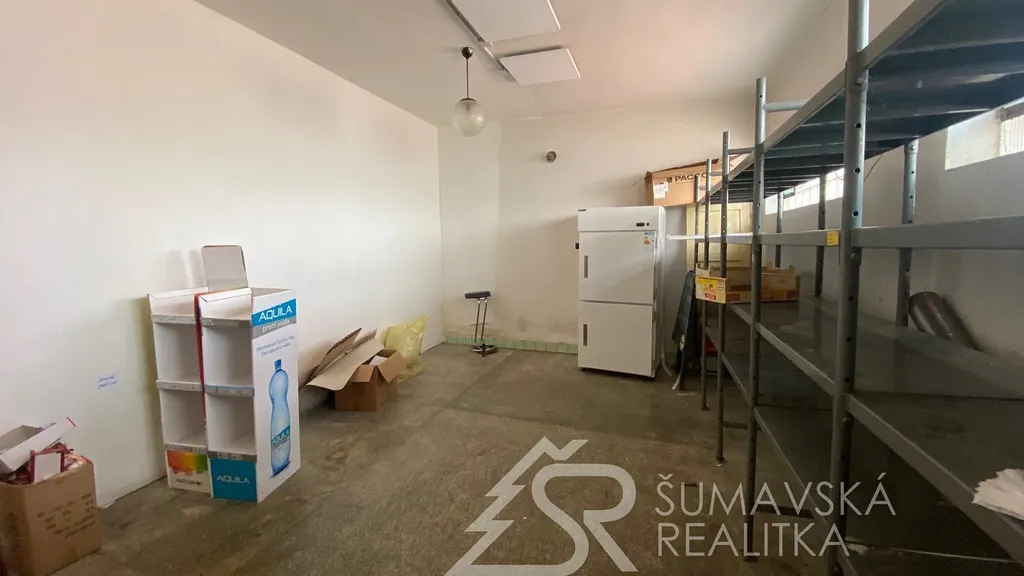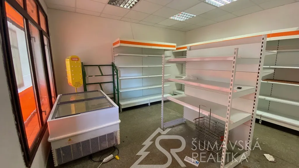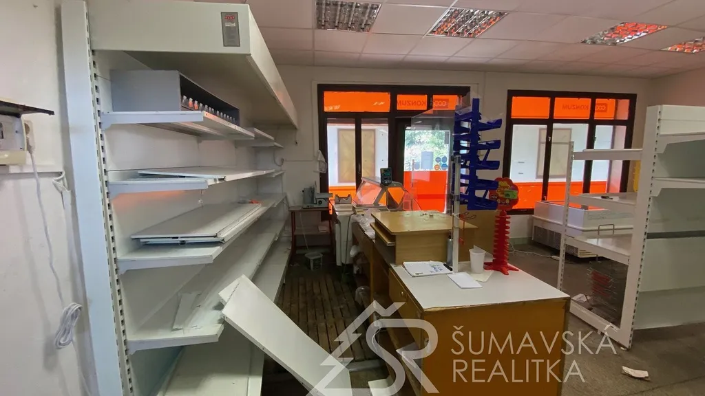 kotelna: 3,8 m². Celková podlahová plocha: 67,4 m². Vstup do objektu je přímo z veřejné komunikace. Za hlavním prodejním prostorem se nachází zázemí včetně skladů a dalších technických místností. Inženýrské sítě a vybavení: elektřina: 230/400 V, voda: obecní vodovod, kanalizace: septik, vytápění: klimatizační jednotka, ohřev vody: elektrický ohřívač, objekt je vybaven bleskosvodem