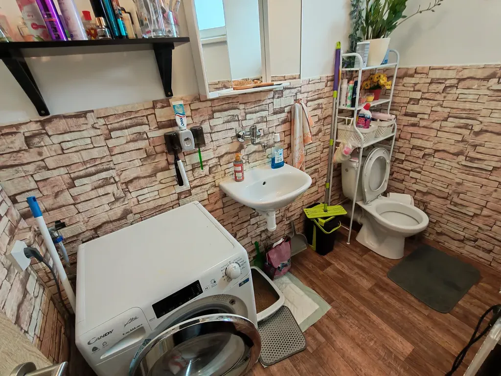 v 1.P. je pěkný prostorný obývací pokoj s kuchyňským koutem, ložnice a koupelna s vanou a WC.