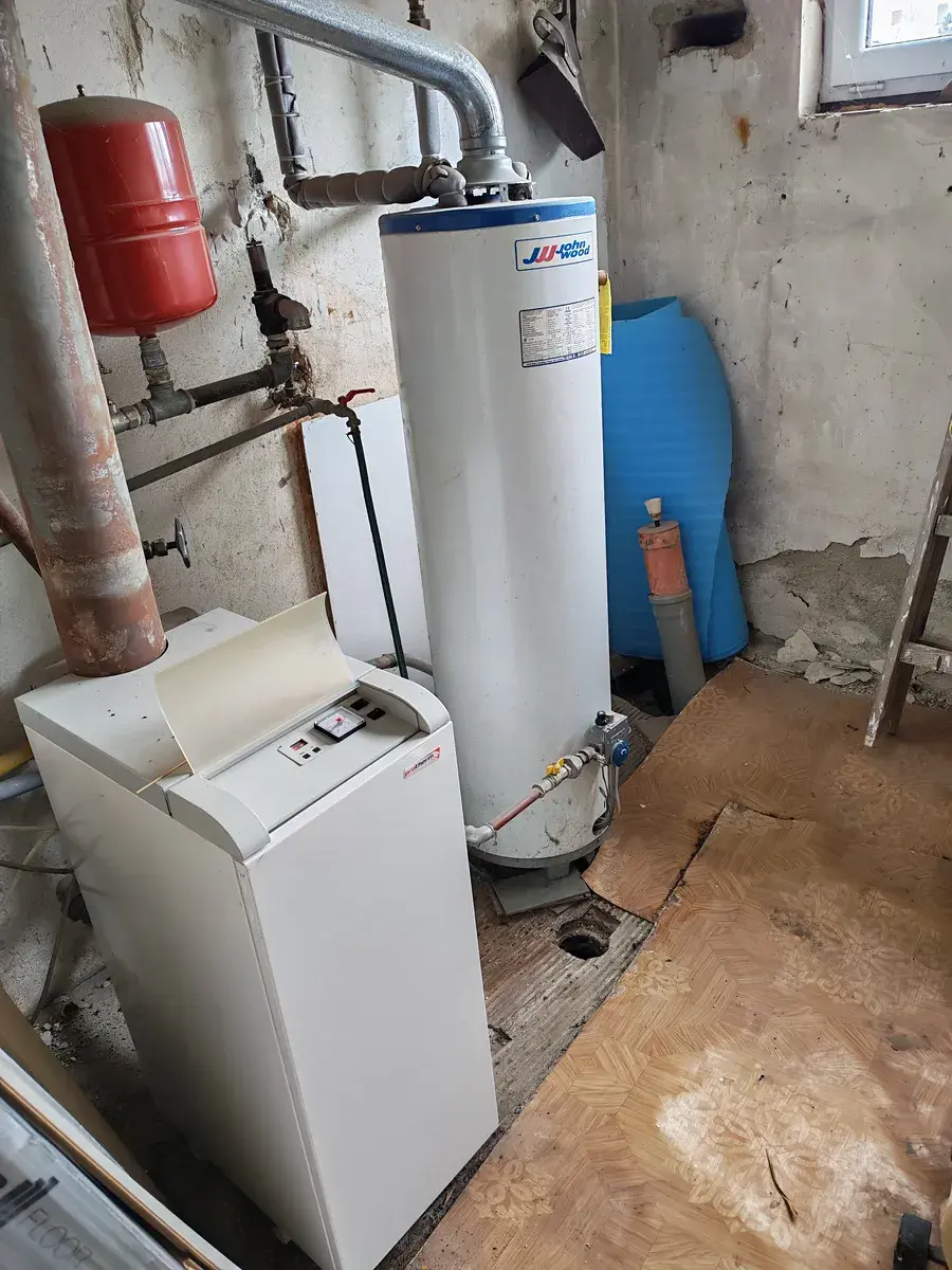 V přízemí se nachází garáž, kotelna s kondenzačním plynovým kombi kotlem, prádelnou se sprchovým koutem a vstupem na zahradu.