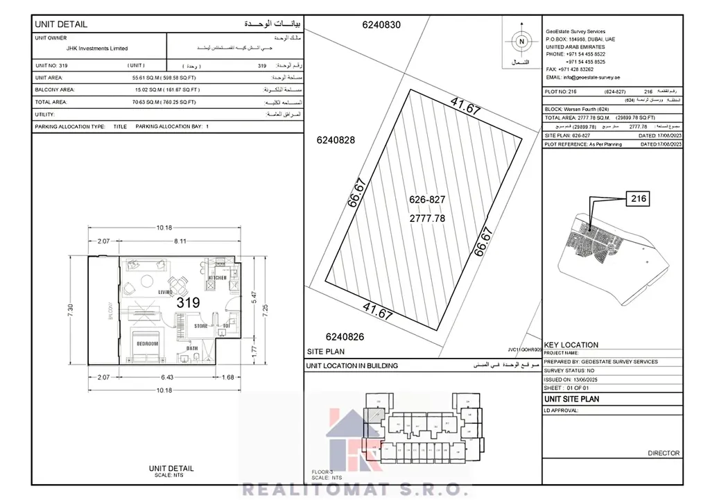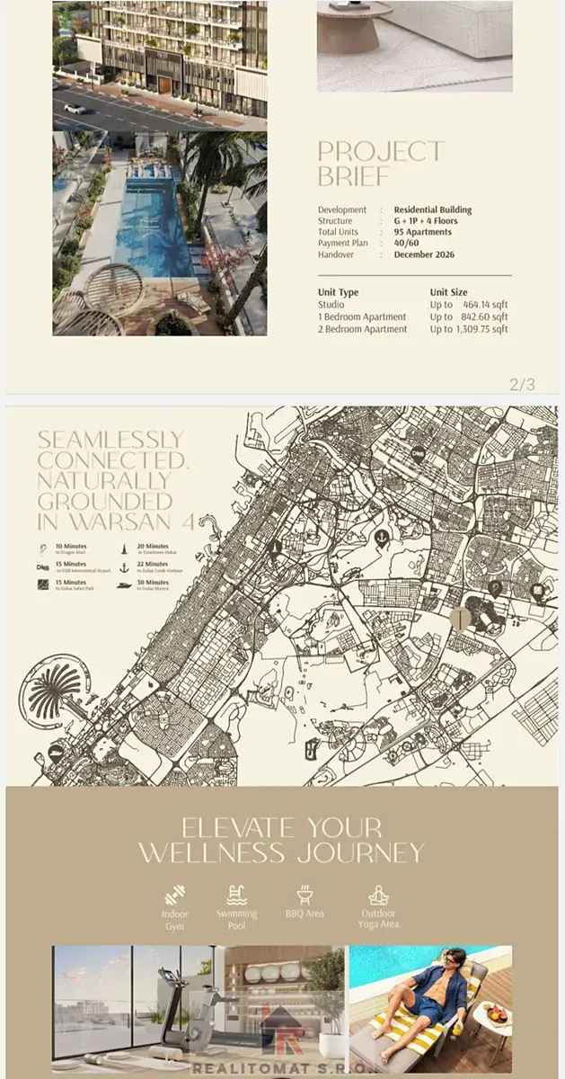 Zbývajících 60 % se platí při předání bytu a je zohledněno v ceně. Vše zařídí naše Česká makléřka v Dubaji a realitní služby jsou již v ceně.