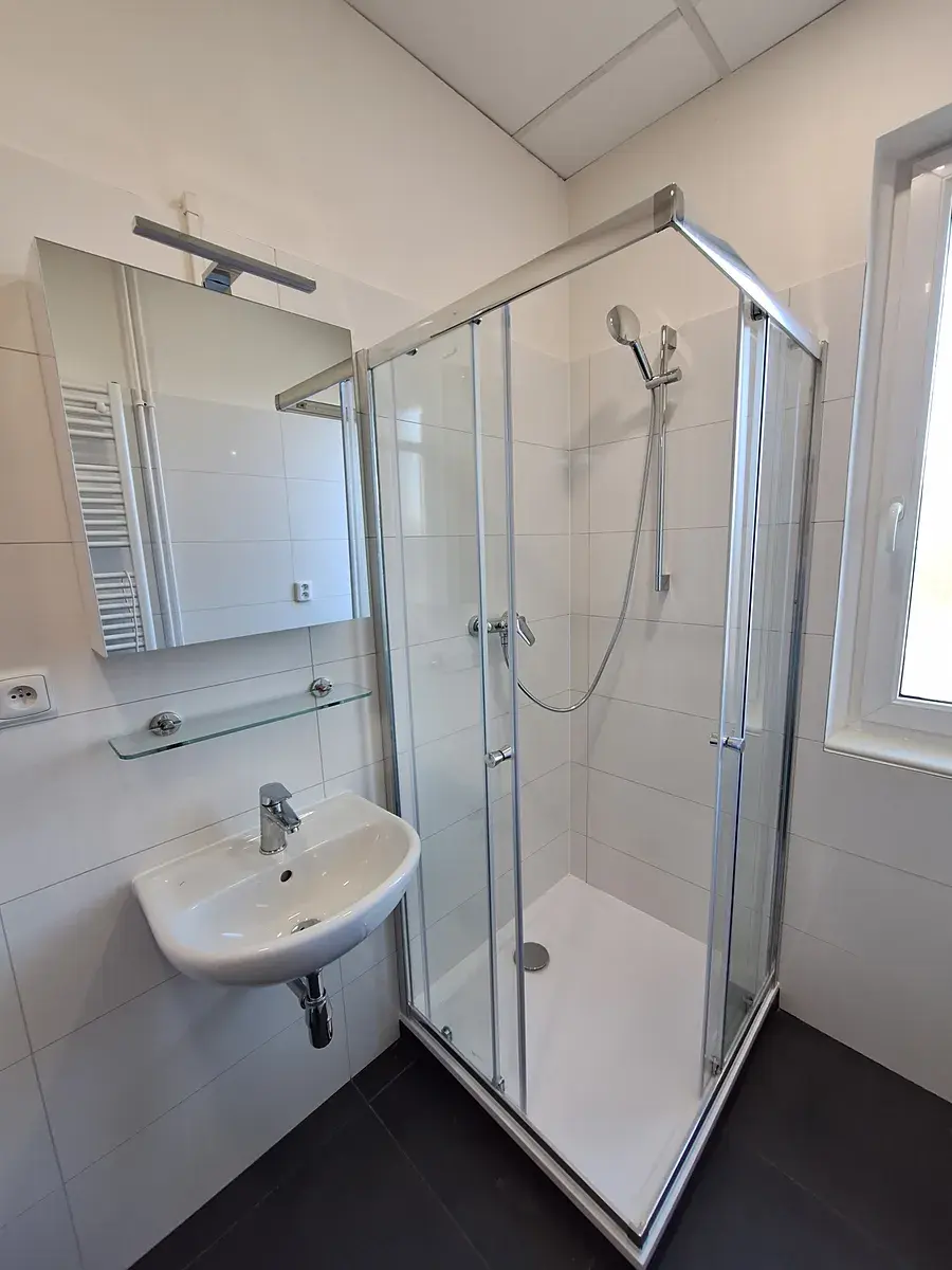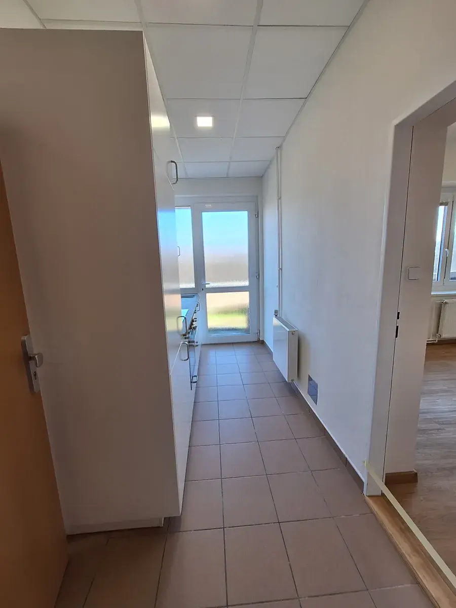 V bytě je vstupní chodba, kuchyňský kout s novou kuchyňskou linku se spotřebiči, prosklené dveře na terasu. Nová koupelna se sprchovým koutem, umyvadlem, WC a pračkou. Dva samostatné neprůchozí pokoje.
