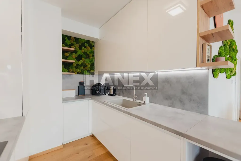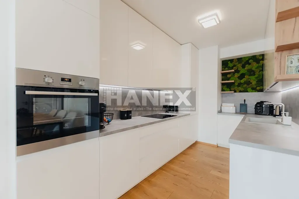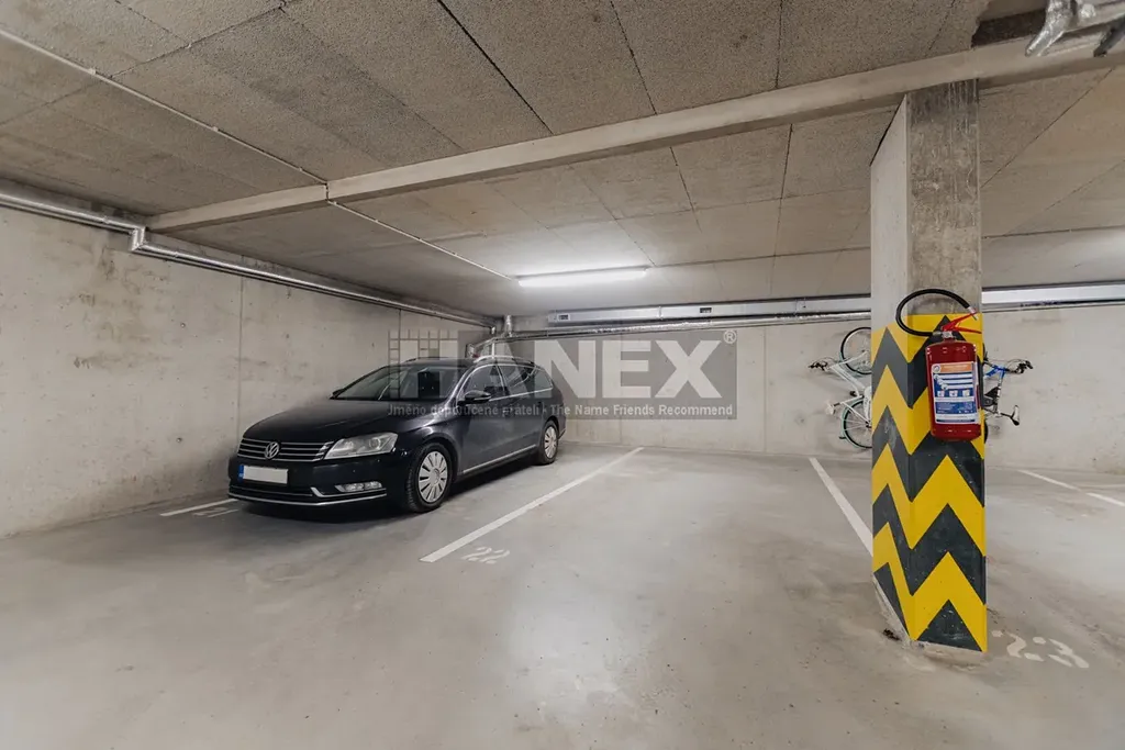 Užívejte si bezstarostného a vysoce komfortního bydlení v tomto krásně zařízeném bytě ihned k nastěhování. Tento světlý a prostorný moderní byt (96 m2 + 5,8 m2 balkon) se nachází v 1. patře rezidenčního projektu dokončeného v roce 2022. Nabízí dvě ložnice, samostatnou kancelář, dvě koupelny, úložný prostor, prádelnu, balkon, sklep, garážové stání a další soukromé venkovní parkovací místo.