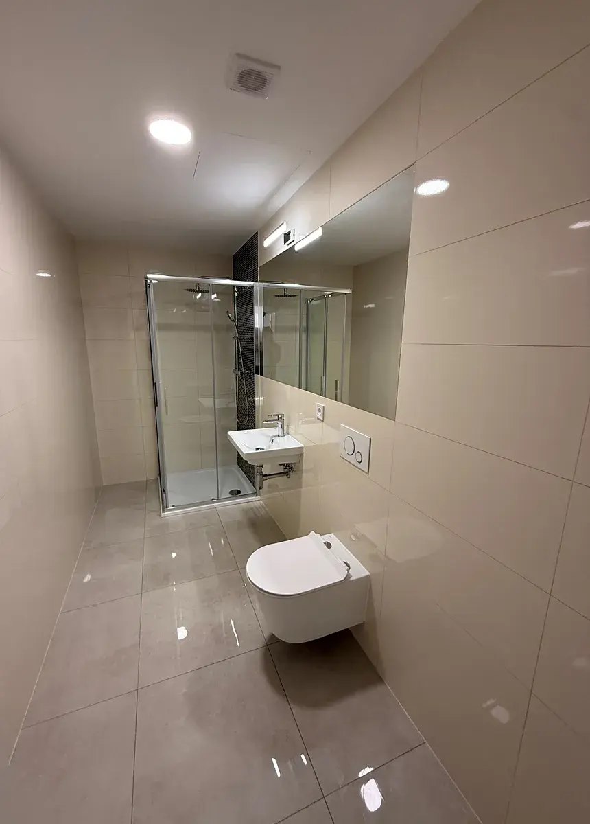 Nabízíme k dlouhodobému pronájmu kompletně vybavený byt 2kk ve 3NP o celkové výměře 45 m2. Dispozice bytu nabízí prostornou předsíň, obývací pokoj s kuchyní včetně všech zabudovaných spotřebičů, ložnici s vestavěnou skříní a koupelnu s toaletou. Byt je navržen s důrazem na prostor a komfort.