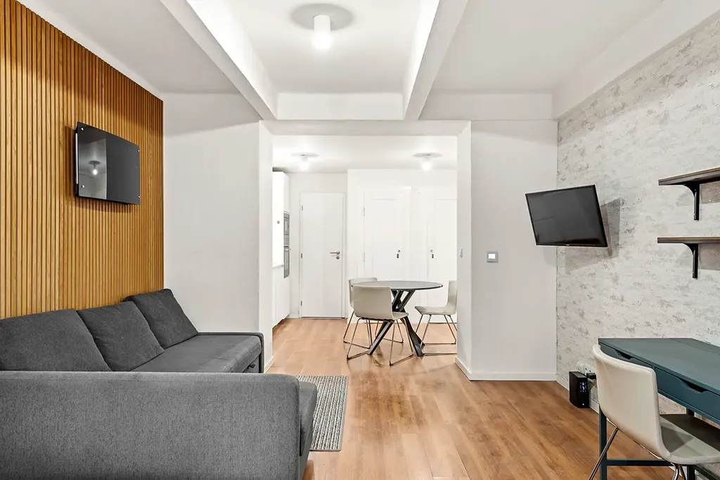 Byt disponuje obývacím pokojem s moderním nábytkem a infrapanelem pro příjemné vytápění. Kuchyň je vybavena spotřebiči, konkrétně lednicí s mrazákem, troubou, mikrovlnnou troubou, digestoří a myčkou nádobí. Součástí bytu je také technická místnost s pračkou, koupelna s prostorným walk-in sprchovým koutem a samostatná toaleta.