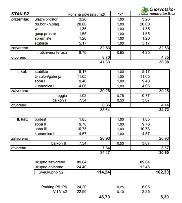 Apartmán/dům má tři podlaží, čtyři pokoje, dvě koupelny, 3 toalety, 3 terasy, zahradu, 2 parkovací stání...