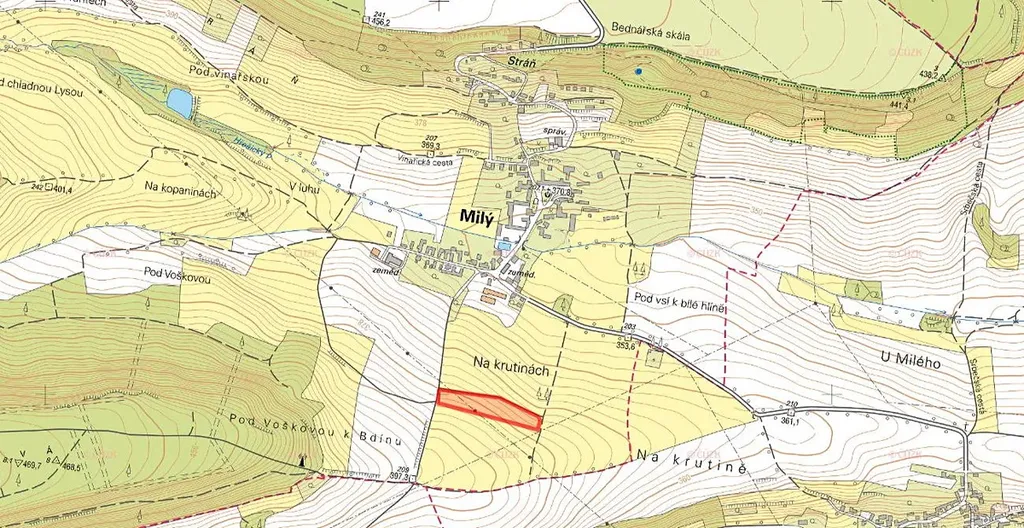 Nabízíme k prodeji ornou půdu o celkové výměře 11 497 m² nacházející se v katastrálním území Milý, okres Rakovník.