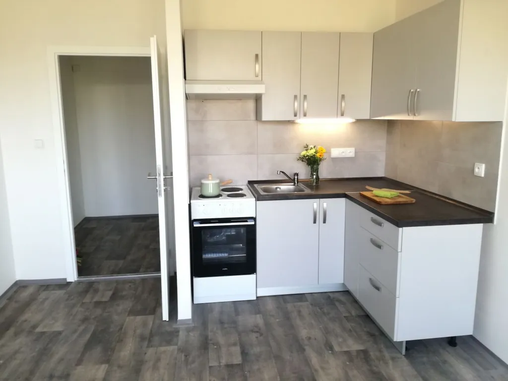 Kuchyňská linka je opatřena elektrickým sporákem a elektrickou troubou. Byt disponuje i komorou.