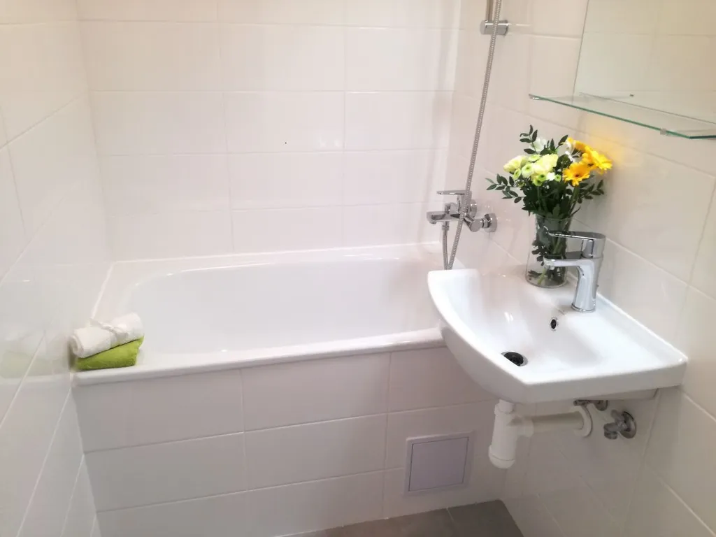 Byt má vyzděné jádro, podlahy, rozvody, omítky, interiérové dveře. Koupelna s vanou a umyvadlem a s možností připojení pračky, toaleta je odděleně.