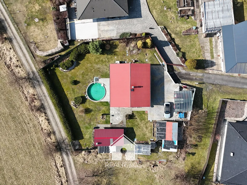 Nabízíme k prodeji rodinný dům se zahradou o celkové výměře 1142 m2, se zastavěnou plochou 108 m2. Dům je přízemní, zděný se sedlovou střechou, a jeho dispozice je řešena jako 3+kk, se vstupní chodbou a technickou místností. Dům je napojený na vodu, elektřinu a kanalizaci, vytápění je řešené krbovými kamny a klimatizací. Okolo domu na pozemku jsou dále: zahradní domek s vlastní kuchyňkou, sporákem a krbem, skleník, plechová bouda na nářadí, dřevník a zastřešené stání pro dvě vozidla. Přístup k domu z ulice je za elektricky ovládanou bránou, kde je zpevněný úsek v podobě zámkové dlažby. Za domem se nachází bazén s filtrací. Z rohu zahrady je branka s přístupem na zadní cestu. Umístění domu je ve spodní, klidné části obce, kde Vás nebude nic rušit, na autobusovou zastávku je to cca 100 m, a to jak směrem na Děčín, tak na Ústí nad Labem. Dojezdová vzdálenost k oběma městům je cca 13 km, takže autem do 15 min. Dálnice D8 v dojezdu do 7 min., obec Tisá, nebo Sněžník do 10 min. Ze zahrady je z jedné strany krásný výhled na panorama skal, a z druhé - jižní strany je výhled na kopec Klobouk. V obci je veškerá obč. vybavenost vč. lékařského domu, několika obchodů, restaurace, golfové hřiště, dětské hřiště, fotbalové hřiště, několika rybníků a mnoha kilometrů zadních cest vhodných k procházkám, běhání, jízdám na čtyřkolkách či terénních motocyklech apod. U domu se do budoucna nabízí varianta jeho rozšíření - prodloužení o cca 1/3 jeho délky a získání 1 - 2 dalších pokojů. Pro více informací, či sjednání prohlídky mne prosím kontaktujte a sdělím vám vše potřebné.
